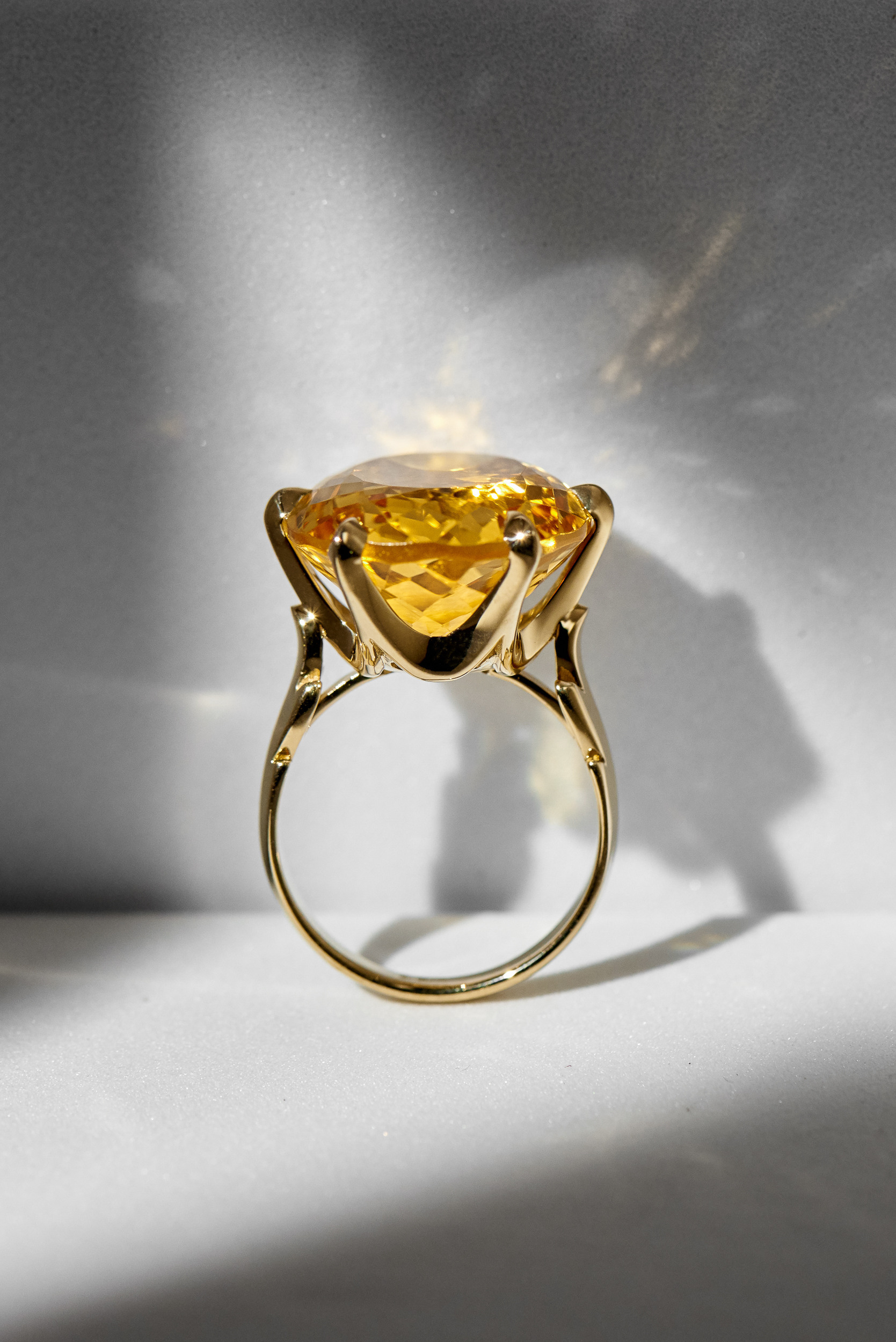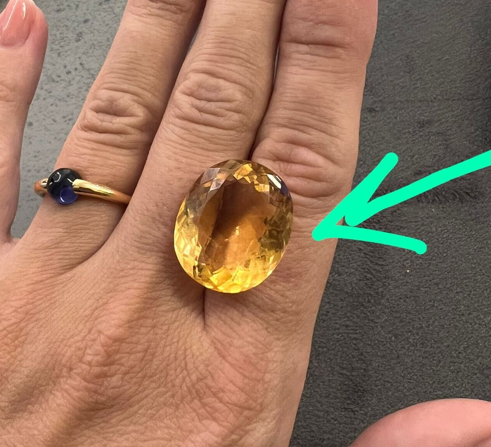 Наша клиентка привезла из Тайланда кольцо с крупным топазом 23ct. Камень природный, красивый, но с большим нюансом - огромное "окно" в середине камня. Это пример азиатской огранки, когда "тянут" массу, весь цвет сосредотачивается по краям, а в середине пустота, сквозь которую все видно.